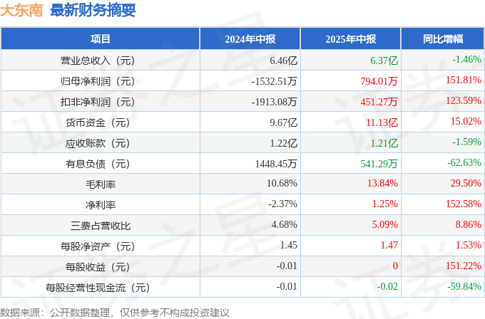大东南(002263)2025年中报简析: 净利润同比增长151.81%, 盈利能力上升